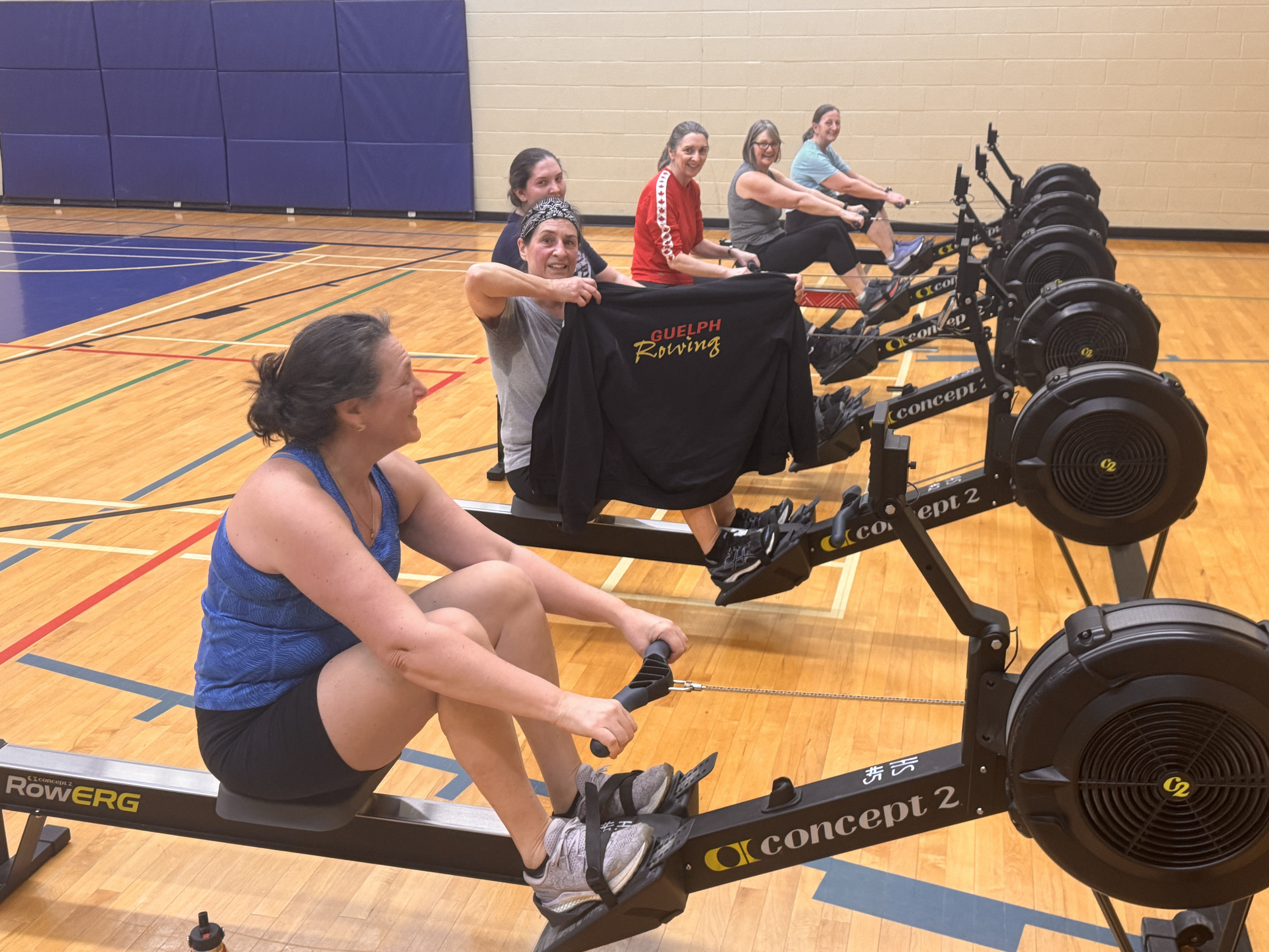 In a major program upgrade, high school athletes have moved out of the boathouse and into the warmer climes of the Community Living Guelph Wellington Gym on Royal Road (at least until the lake opens up). After a few weeks of acclimatization to temperatures above freezing, the group competed at the Nancy Storrs Indoor Rowing Championships in late February. Impressive PBs were registered by all with Siri Borden placing 4th, Simone Maksym 7th, Rowen Conrad 11th, Sasha Maksym 16th, and Aariz Noor Wang 33rd.