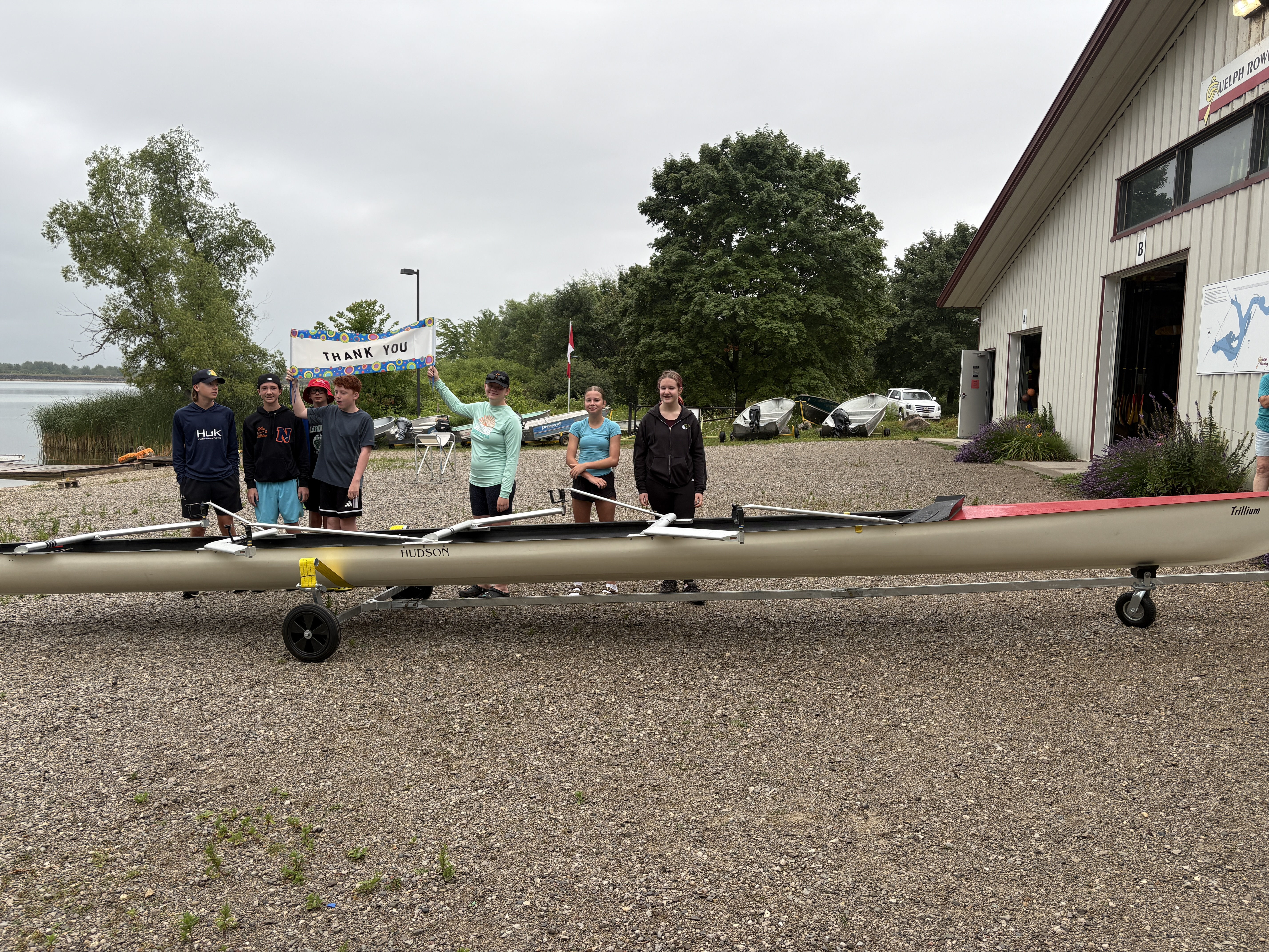 We extend our heartfelt gratitude to Rosmar Welding. in Guelph for constructing and donating the galvanized dolly, which facilitates the transfer and storage of the heavily utilized Trillium Touring Shell. This boat plays a crucial role in training LTR, novice, and recreational rowers, from youth to adults at the club. The accompanying photo has the Skills Development youth alongside the Trillium boat and dolly. A special thanks goes to Tara Maksym for efforts in coordinating this project. Community support remains invaluable.