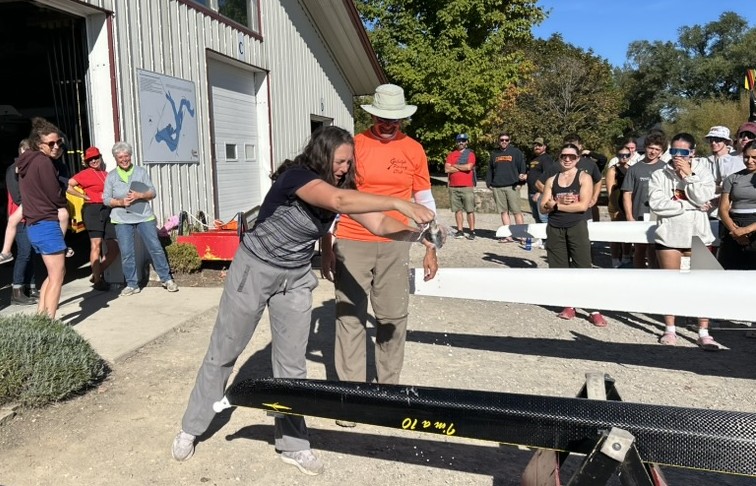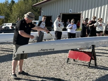 - “Pulling Together” – Walter Kehm – donated his hand crafted wooden Schoenbrod 1X rowing shell to the club