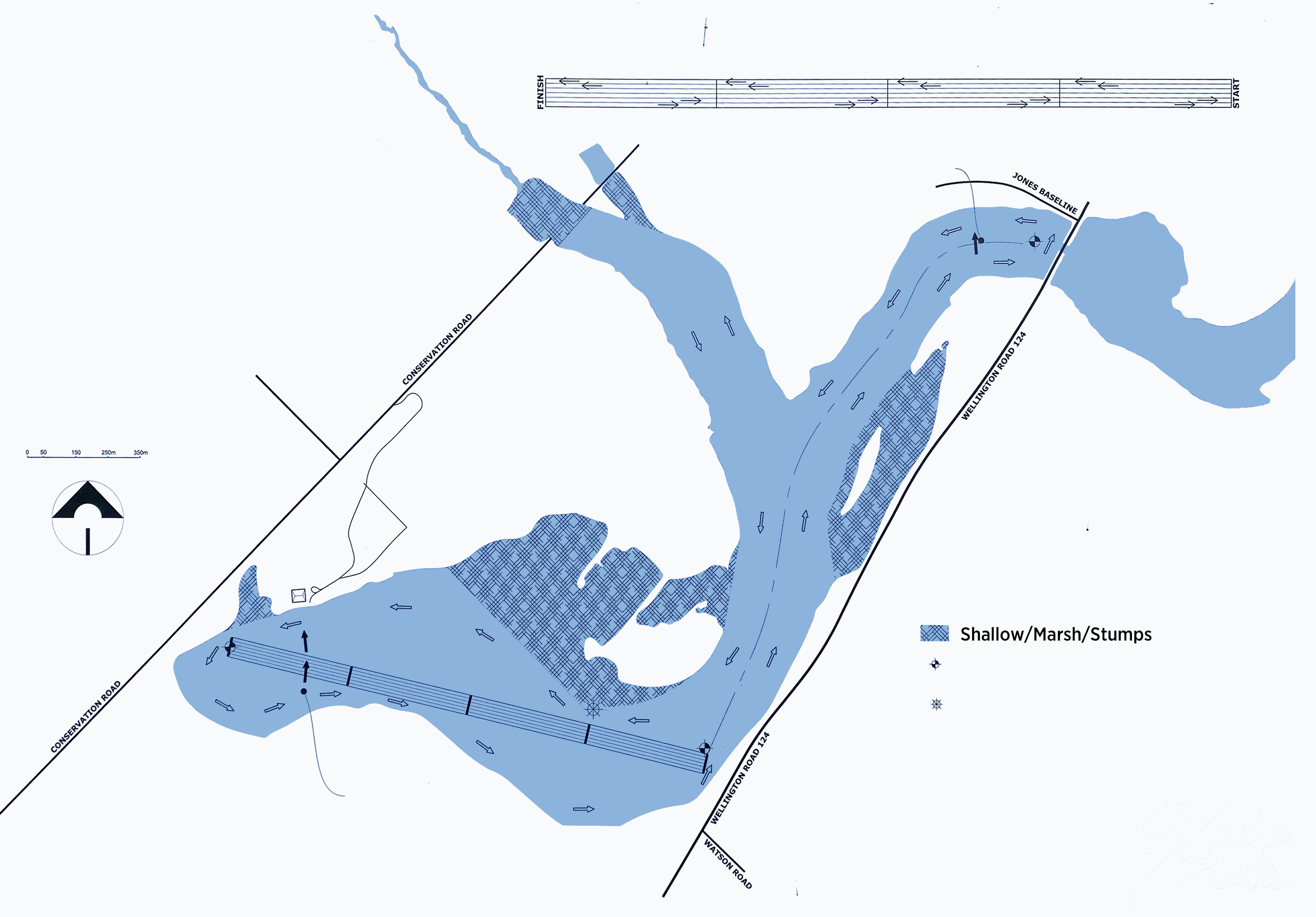 - Faster boats and time trials should stick closer to the centre buoys – but avoid blocking the middle of the lake